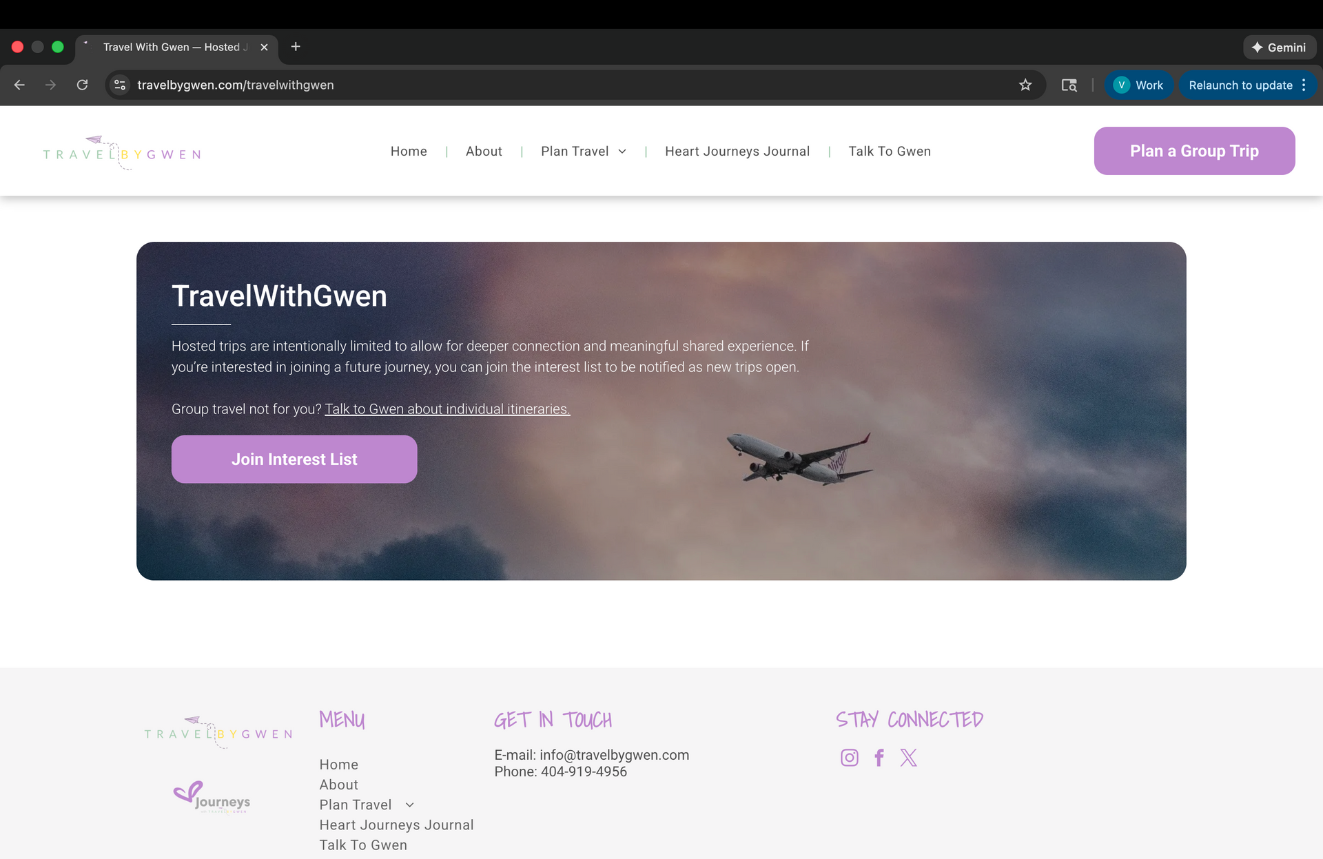 Project: TravelByGwen — Website Refresh & Structure QA